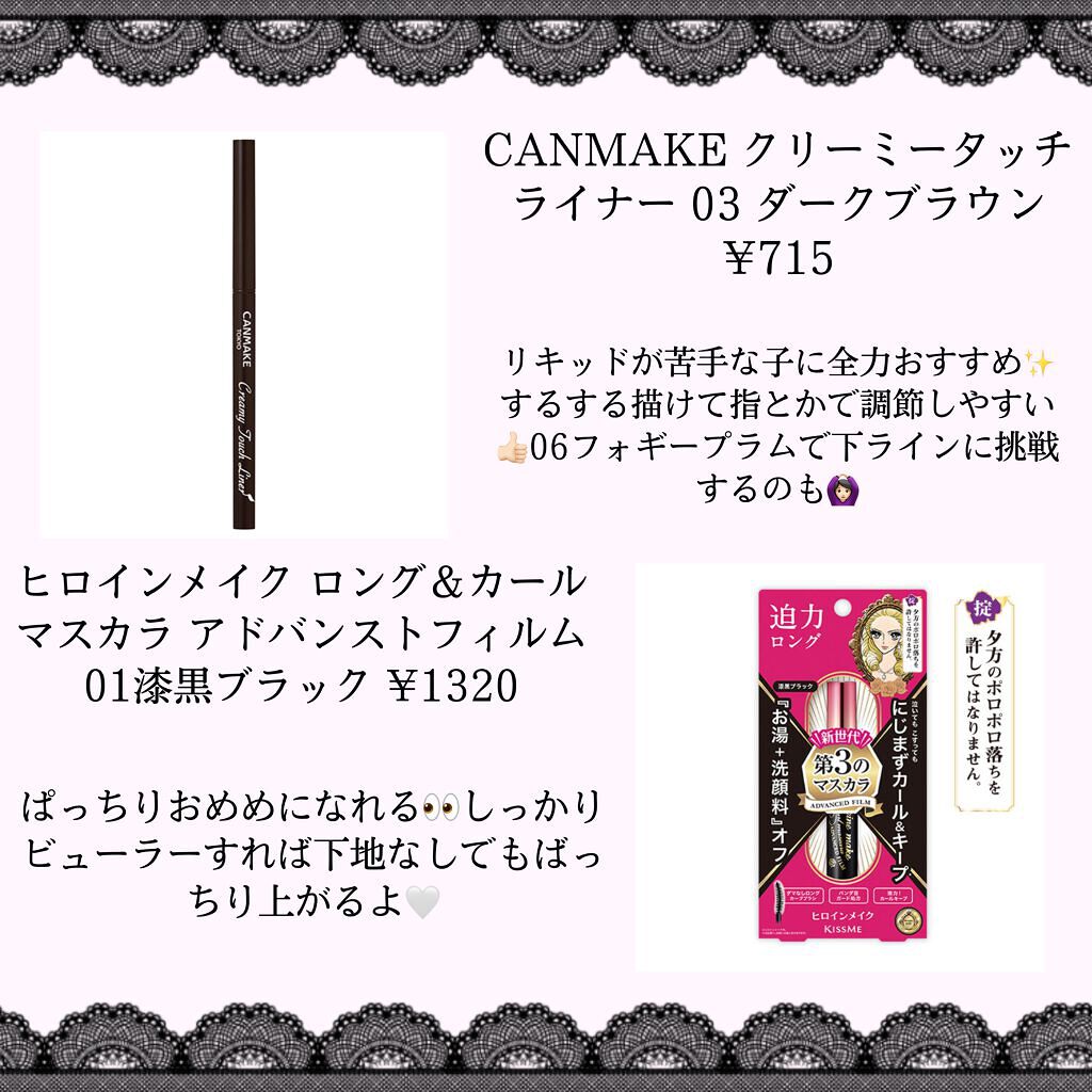 馴染みやすい色のため、ピンクが苦手な方でも挑戦しやすいメイクです。 アイライナーやマスカラは淡い色のものを使用し、印象が強くなりすぎないようにしています。 アイシャドウの塗り方は目の形に合わせて工夫してみてください👀