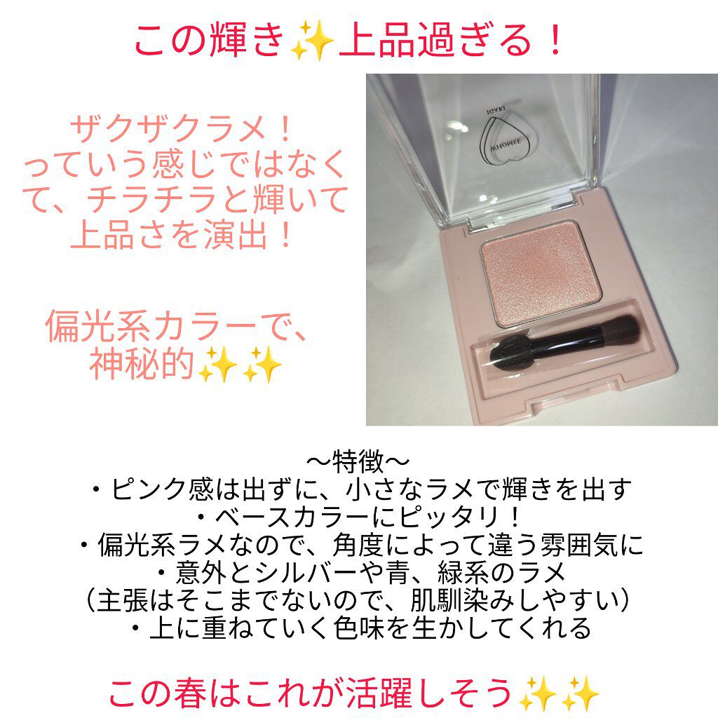 | 単色アイシャドウランキング第6位 | 繊細なラメがきらっきら✨ 発色も🙆♀️ めっちゃ可愛い色なの💓 | 詳細を見る | |
