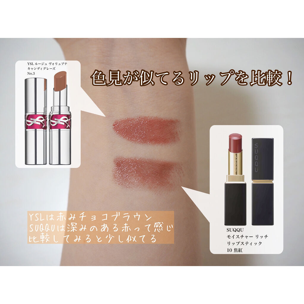 YSL待望の新作リップ🤎ルージュヴォリュプテ キャンディグレーズ4,730円(税込)No.3CACAONOBOUNDARYNo.4NUDEPLEASUREの2色を購入したのでレビューしていきます☺︎このリップは"美容液成分78%配合"されてい...