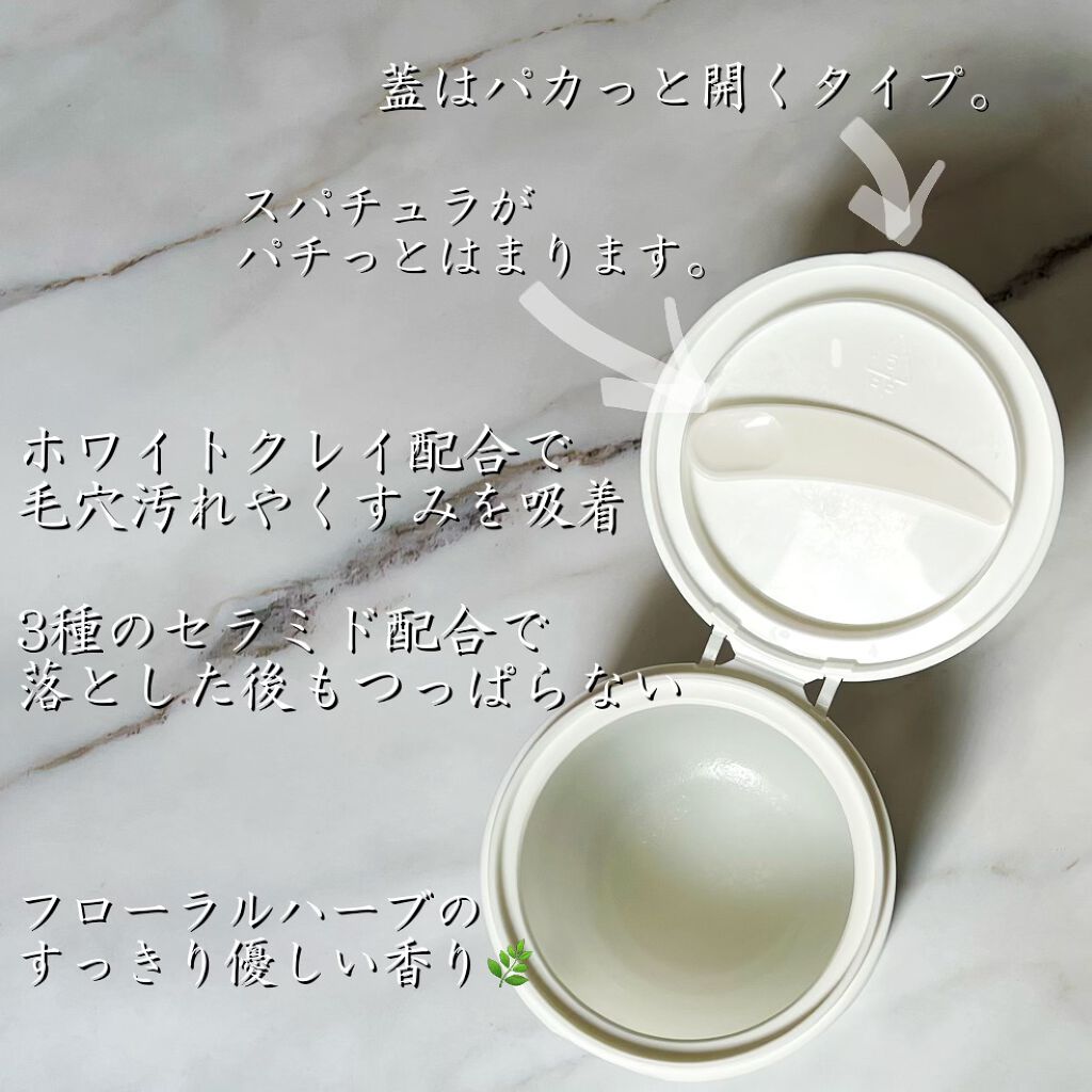 - 角質くすみや毛穴汚れへの吸着力が高い「ホワイトクレイ」とバリア保湿成分「3種のヒト型セラミド」を配合し、ベタつかない洗い上がりで透明感のあるツルスベ肌に導いてくれる吸着クレンジングバーム。 この1つでクレンジング・洗顔・角質ケア・マッサージケア・保湿美容パックの5つの機能を兼ね備え、毛穴の黒ずみ汚れ・くすみの元となる角質も、しっかり落とします。 肌に乗せるとバターのようにとろけてオイル状に変化するテクスチャーで肌への摩擦感が少なく、顔全体をマッサージもすることができます。 しっかりメイクや毛穴の汚れにもとろけるように馴染み、ホワイトクレイで古い角質や皮脂、黒ずみ汚れなどを優しい使い心地で吸着除去します。 セラミドやビタミンC誘導体だけでなく、アルガンオイル、ホホバオイル、オリーブオイルなど良質なオイルと、スクワラン、コラーゲンなどの高保湿エッセンスを配合(全て保湿成分)。 使用後は肌がやわらぎ、高い保湿感がありながらベタつかずスベスベな透明感のある肌へ導きます。 肌を健やかに保ち、なめらかな素肌へ。 フローラルハーブの香り、W洗顔不要です。