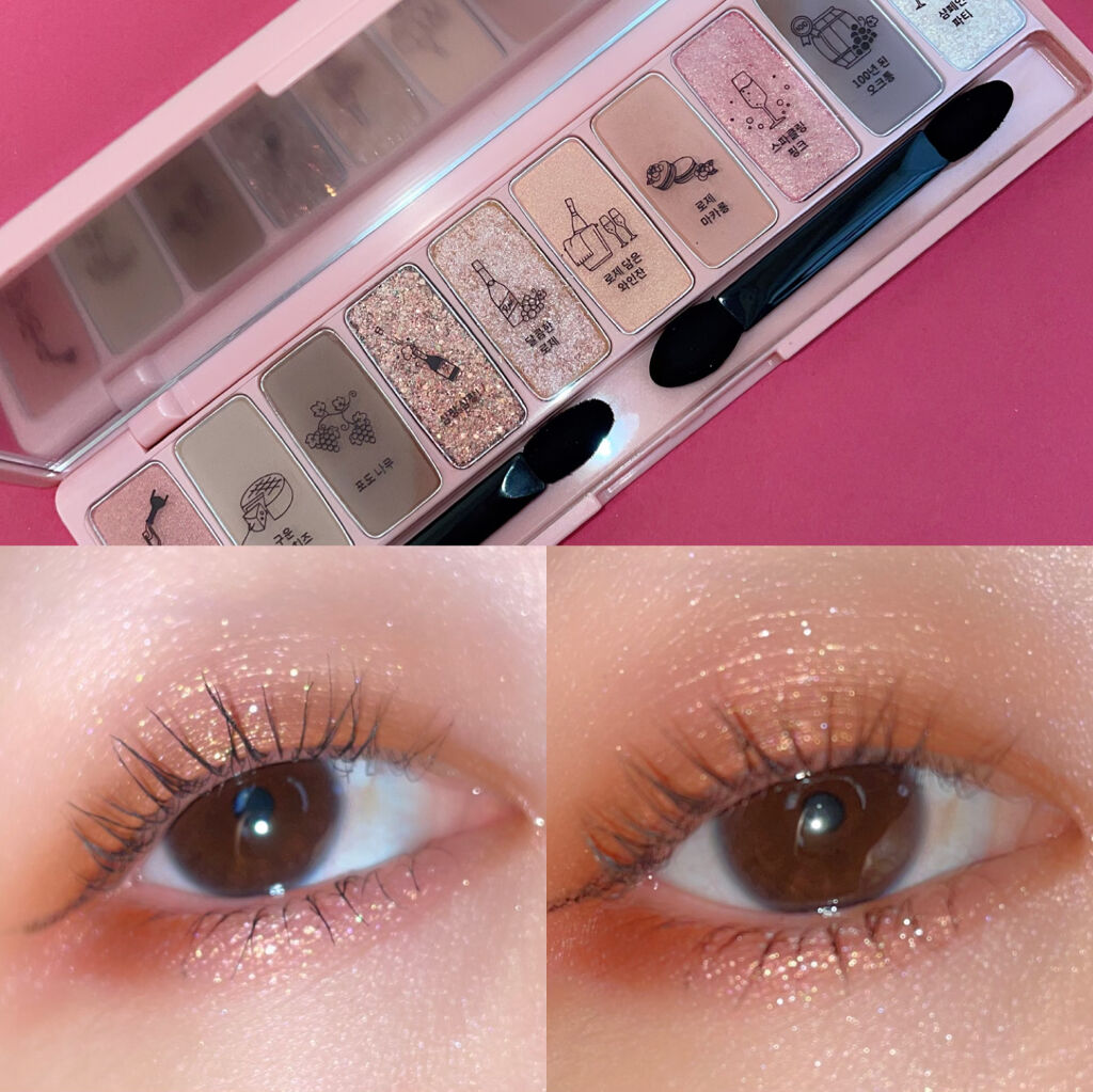 - 肌なじみの良い、鮮やかな発色で目元を華やかに彩る捨て色なしの10色アイシャドウパレット 異なる3種のテクスチャーを自由に組み合わせて、グラデーションも思いのままに。 NEW 2023.4 ・肌トーンにあう配色を詰め込んだトレンドカラー 肌トーンに合わせて、自分に似合うトレンドカラーが楽しめる♡ パーソナルカラー×トレンドカラーの掛け合わせパレットで、デイリーメイクもスペシャルメイクも気分にあわせてなりたい自分に! ・むにゅっとジェル質感ラメで高密着、煌めく目元 パレットの中でもポイントとなる大きめ粒子のラメは、ジェルのような新質感で落ちにくく肌にぴったりと密着します。キラキラとした目元をキープします。 ・使うカラーは大きめに!リアル捨て色なしパレット ベースやラメのよく使うカラーと締め色や濃い色等の減りが少ないカラーを異なるサイズで詰め込んだ、リアル捨て色なしパレット! <使用方法> 付属のデュアルシャドウブラシでベースカラーをまぶた全体に塗り広げます。細いブラシでグラデーションや目尻、アイライン、涙袋などのポイントカラーをのせて仕上げます。