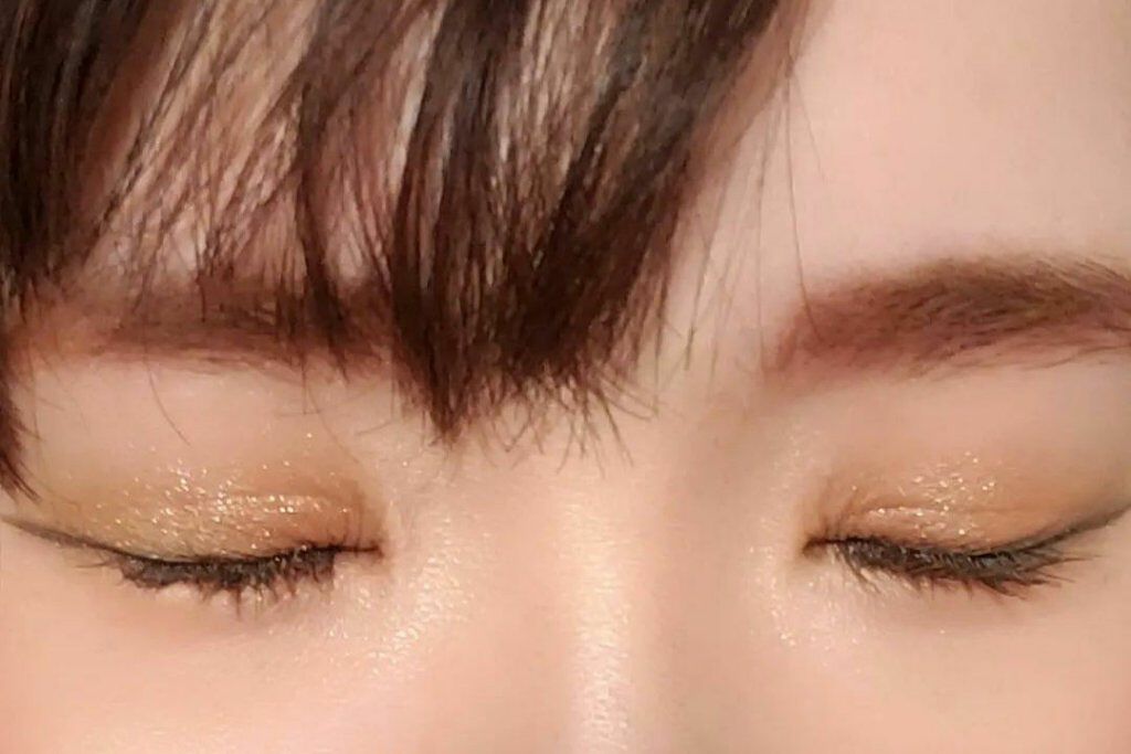 グランバルの白ラメ最初にぬったらピンクラメがちらちらしてるのめだってとってもかわいかった🥺 イエローのアイシャドウとブルーのラインがとってもかわいい! 青すぎないのがとてもよい🥺