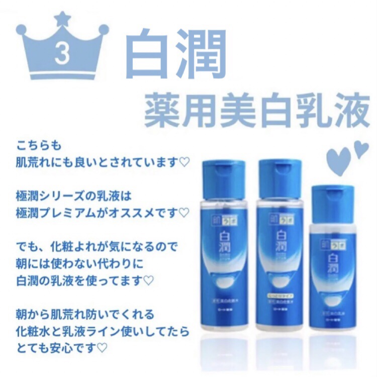 白潤プレミアムは敏感肌の私も使いやすく美白ケアのできる化粧水なのでお気に入り❤️🔥 極潤プレミアムヒアルロン液が1番しっとりしていて保湿力が高くて好きでした!乾燥がひどい時に使いたいのはこれ一択! 全種類アルコールフリーなのが個人的に嬉しいです♡香料が苦手で無香料なのも使いやすくて好きです!