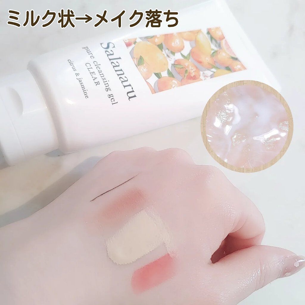 サラナルピュアクレンジングジェルクリアSNSで気になってたクレンジング💛ジェルからのオイルからのミルクに質感が変化するクレンジング!こういうのおもしろいからすき!馴染み早いから全然めんどくさくないよ〜!メイクもちゃんと落ちるしお肌に優しい気が...