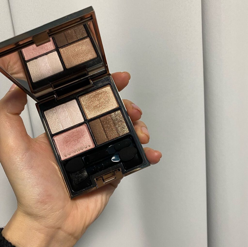 - 肌の色であるベージュから発想された色と、異なる光感のグラデーションにより、計算された立体的な目もとをつくる4色セットのアイシャドウ。ハイライトカラー、シェードカラーは、それぞれ3段階の光のグラデーションで構成され、より精密に光と影を操ります。