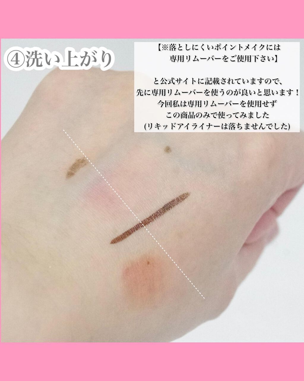 - 【使用方法】 手と肌が乾いた状態でお使いください。 ジェルを適量出し、肌の上でやさしく転がすようにメイク汚れとなじませ、オイル状に変わったら水またはぬるま湯で洗い流してください。 【使用上の注意 / 保存方法】 ◇肌に異常が生じていないかよく注意して使用してください。 ◇肌に傷・はれもの・湿疹など異常のある時は使用しないでください。 ◇使用中(または使用した肌に直射日光があたり)、赤み・はれ・かゆみ・刺激・色抜け(白斑など)や黒ずみなどの異常があらわれた場合は使用を中止してください。そのまま使用を続けると、症状を悪化させることがあるので、皮膚科専門医などにご相談されることをおすすめします。 ◇目に入らないようにご注意ください。目に入った場合は、すぐに水かぬるま湯で洗い流してください。異常が残る場合は、眼科医にご相談ください。 ◇開封後は、なるべく早く使い切るようにしてください。 ◇乳幼児の手の届かないところに保管してください。 ◇直射日光のあたる場所、極端に低温又は高温、多湿の場所を避けて保管してください。 ◇植物由来成分を配合しておりますので、色や臭いに若干差が生じる場合などがありますが品質には問題ありません。 ◇落ちにくいポイントメイクには専用リムーバーのご使用をおすすめします。 ◇使用後は必ずキャップをしっかりと閉めてください。