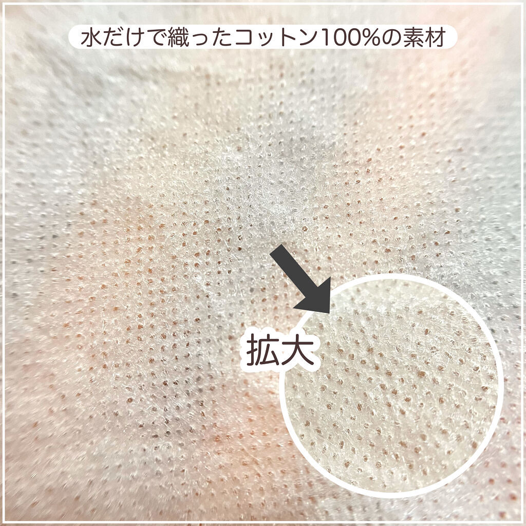 週に1、2回のスペシャルケア✨ コットンシートで触った感覚、見た目はガーゼっぽい! このパックは透明感、肌荒れ防止、保湿成分が入っており、エタノール・シリコーン・鉱物油・合成着色料不使用なのもお肌にも優しくて好き❤️☺️ 保湿感はもちろんあるんだけど浸透力が高いのかパック剥がした後の表面のしっとり感とかは軽くあるくらいなのに肌の中は潤ってる感覚でした!