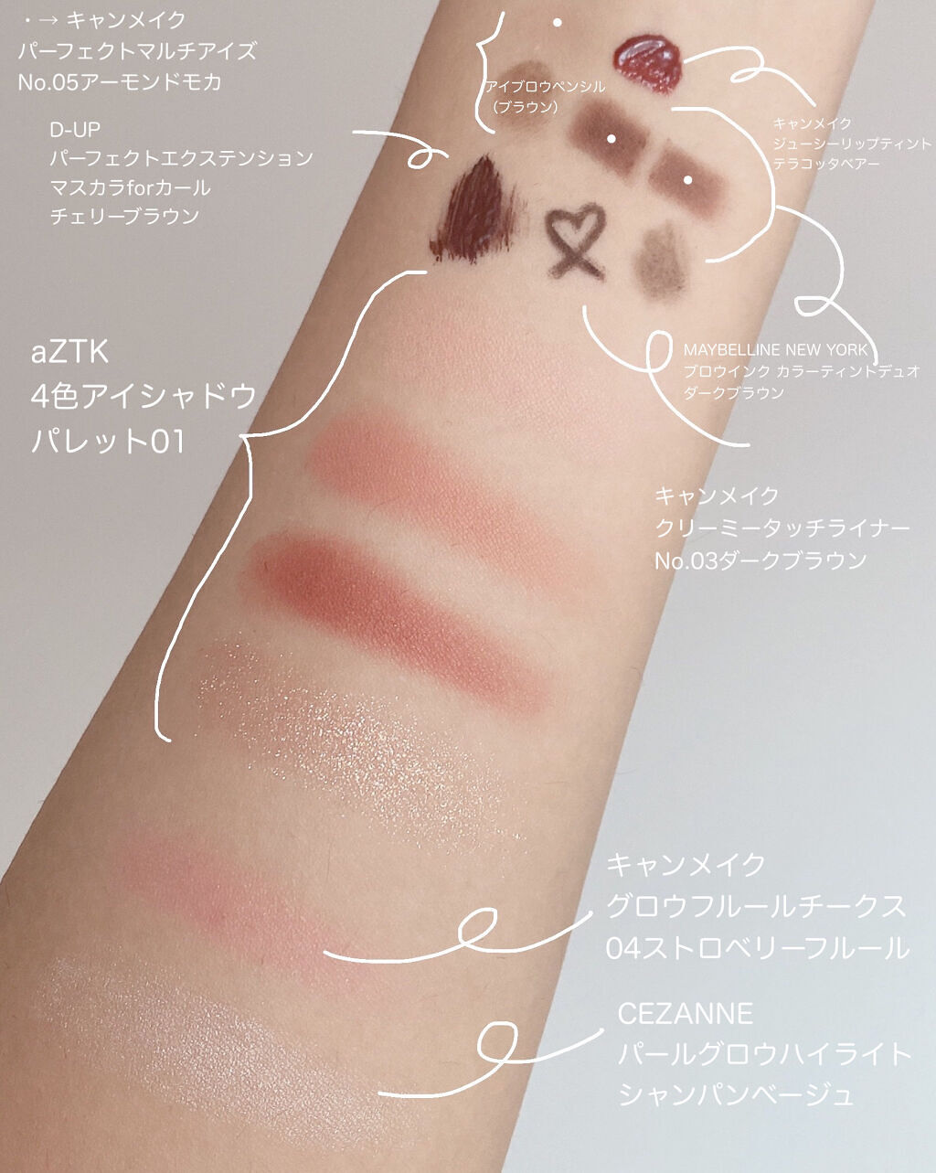 パレット見た時は、濃いめで使いこなすのキツイのでは?と正直思ったものの、使ってみるとめちゃくちゃ馴染む🥹💗イエベでもしっかり馴染んでくれるし、目元盛れるから結構好きな色味🥰ピンクブラウンのアイシャドウとブラウンのマスカラをあわせることで色素薄...