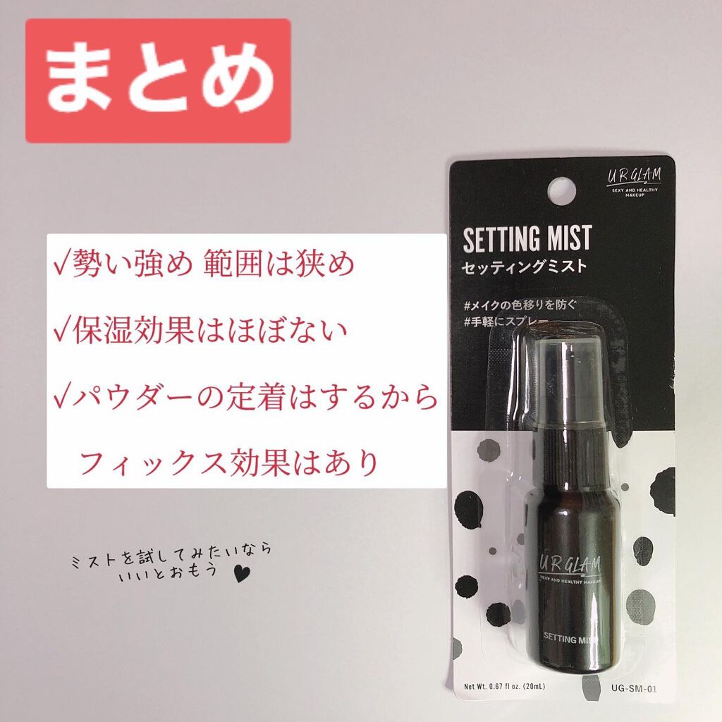 \コスメ購入品紹介/▷URGLAMセッティングミスト思っていたよりも使えた!110円のメイクキープミスト🫧コンパクトサイズで手軽に使えるセッティングスプレー!メイクの仕上げにスプレーするだけでメイク崩れを防いでくれます✨確かにメイクは崩れにく...
