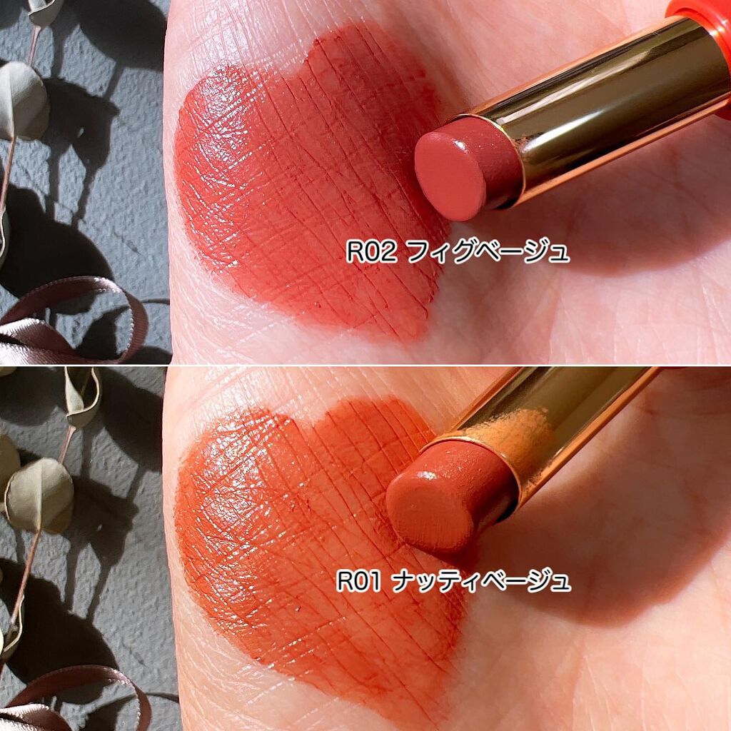 - <レアマットタイプR01 ナッティベージュ> リンゴ酸ジイソステアリル、トリエチルヘキサノイン、トリ(カプリル酸/カプリン酸)グリセリル、ジフェニルシロキシフェニルトリメチコン、ポリエチレン、トリイソステアリン、マイクロクリスタリンワックス、トリエチルヘキサン酸トリメチロールプロパン、サフラワー油、水添ポリイソブテン、メチコン、テトラデセン、ジイソステアリン酸グリセリル、トコフェロール、シリカ、水酸化Al、シメチコン、テトラヒドロテトラメチルシクロテトラシロキサン、BHT、マイカ、酸化鉄、酸化チタン、硫酸Ba、赤202、赤201、青1、橙201 <レアマットタイプR02 フィグベージュ> リンゴ酸ジイソステアリル、トリエチルヘキサノイン、トリ(カプリル酸/カプリン酸)グリセリル、ジフェニルシロキシフェニルトリメチコン、ポリエチレン、トリイソステアリン、マイクロクリスタリンワックス、トリエチルヘキサン酸トリメチロールプロパン、サフラワー油、水添ポリイソブテン、メチコン、テトラデセン、ジイソステアリン酸グリセリル、トコフェロール、シリカ、水酸化Al、シメチコン、テトラヒドロテトラメチルシクロテトラシロキサン、BHT、マイカ、酸化鉄、酸化チタン、硫酸Ba、赤202、赤201、青1、橙201