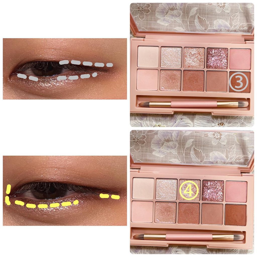 #今日のメイク今日の#デイリーメイク今日はピンクパレット🎨秋だからくすみ感強めのピンクを使ってメイクしてみた👀②のカラーがしっかりくすみピンクなのに目元が暗くなりにくいから使いやすい◎締め色を目頭に入れる時は二重幅ぐらいまでであまり広げずに入...