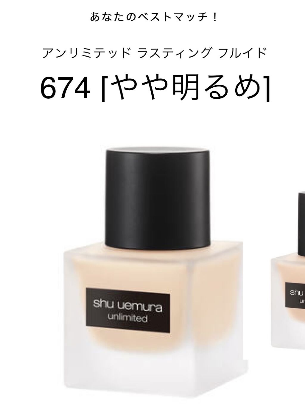 ✔️アジア人の肌を研究し開発された全24色のリキッドファンデーション ✔️薄くて軽いテクスチャー しっかりカバーされるのに素肌に溶け込む。ナチュラルで均一な美肌に ✔️汗、湿度に強く崩れにくい マスクにも付きにくいロングラスティング ✔️SPF24・PA+++ ✔️マスクを付けていても1日中ヨレない! ✔️少量で顔全体に伸びるのでコスパが良い◎ ✔️乾燥が少し気になる。メイク前にしっかり保湿すれば大丈夫👌 全24色から自分の肌に合う色を見つけるのにオススメなのが、アンリミテッド ラスティング フルイドの特設サイトでオンライン診断できる「AI 3D シェード ファインダー」 インカメラを使って360度自撮り動画を撮るだけで、自分にぴったりの色を提案してもらえます! 私の結果は、ベストマッチ 674 オプション1 574 オプション2 764 でした! ※オプションとは、他の明度・色相を試したい場合のオススメ 色で迷った方はぜひオンライン診断を試してみて、自分にぴったりの色を見つけてください♩