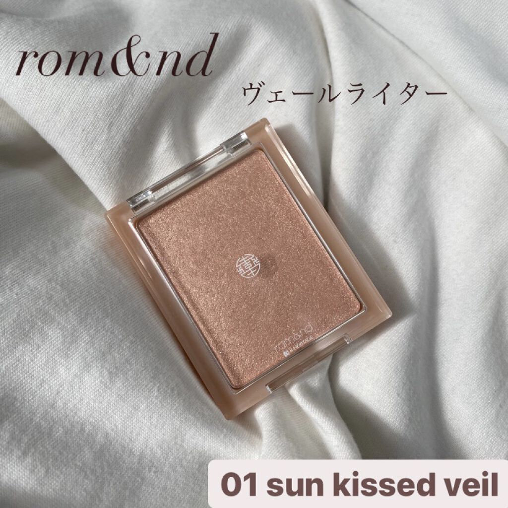 ゴールドに光るハイライトを探していたの🥲 夕方までキラキラしていてとてもお気に入り🥰🥰 評価の良いrom&ndにしてみた✨ 白に光るハイライトは白浮きしちゃって似合わないので イエベ大優勝のハイライト🍑 rom&ndのヴェールライター01