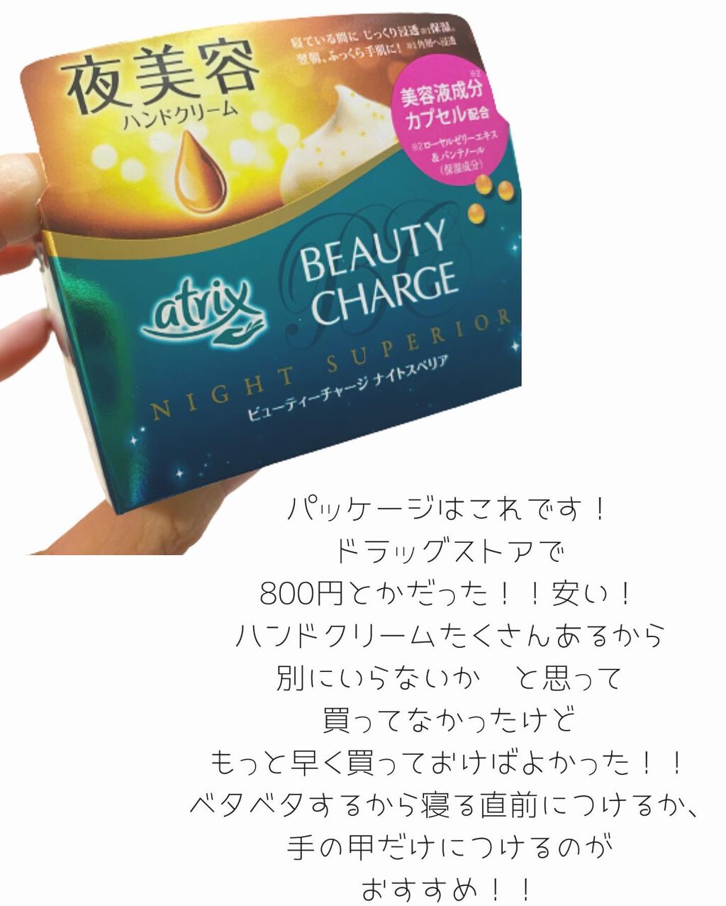 【使った商品】アトリックスビューティーチャージナイトスペリア【使用感】ドリーミーアロマという匂いがいい香り。クリームにつぶつぶが入っており、塗り込むと消える🫠【良いところ】クリーム塗ってすぐ、クリーム特有のベタ感がなくなる。かといって、保湿が...