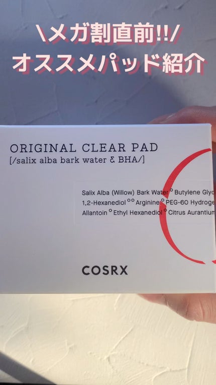 COSRXのオリジナルクリアのパッド。脂性肌向けらしく買ってみた🫶🏻 拭き取るとさっぱりしてて気持ちいい〜!匂いもそんなに気にならなかった◎ パッドは厚みがあって肌あたりがよいから1枚でしっかり拭き取れる。