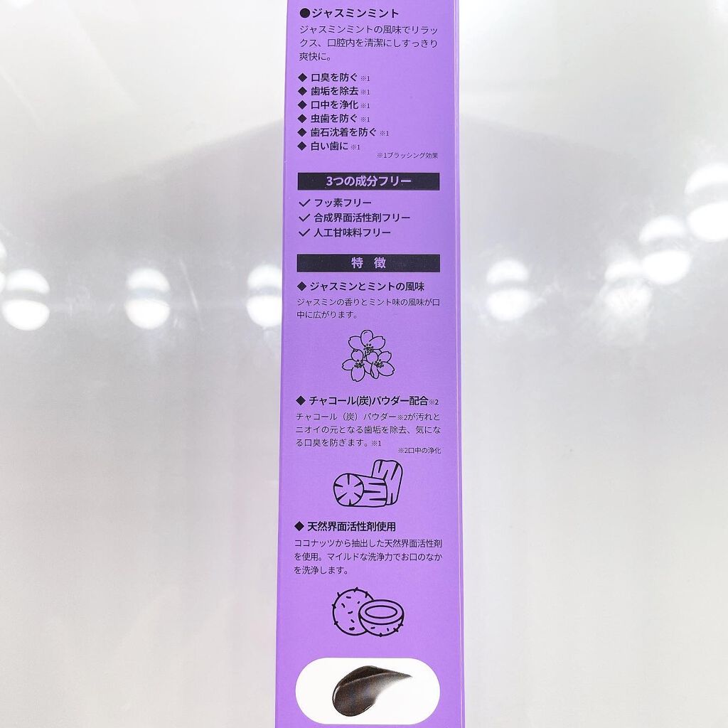 - 炭の口臭予防効果はそのままに、さわやかなジャスミンミントの香りでリラックス。