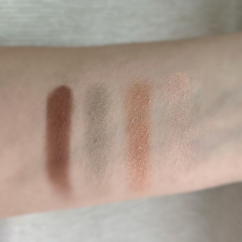 04 ザ・ナラティブ はクールトーンの配色で グレーカラーとかくすんだカラーが多くて 組み合わせは昨日紹介した03より難しいかもしれません。 ヒンスいつも通りの滑らかで発色が良い ただしこのパレットのポイントカラーの ブラックカラーは濃い色なので、キレイに伸ばせないです😢 一番左上はクリームタイプのアイシャドウです 恐らくアイシャドウベースだと思います。 今回の新色03と04 個人的には03の方が気に入りです🌷❤️