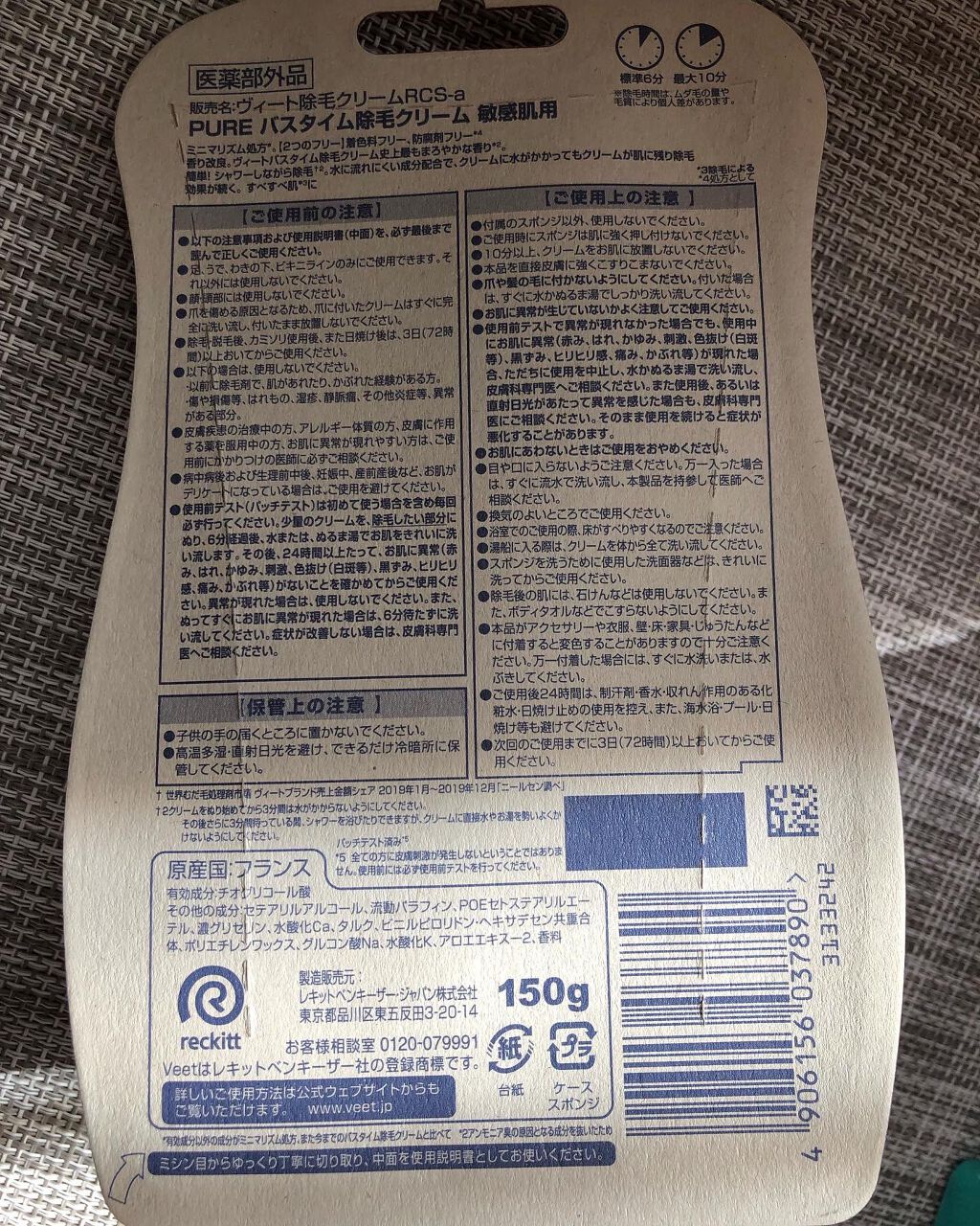 ヴィートピュアバスタイム除毛クリーム(敏感肌用)150gチューブ+スポンジ付きお風呂の時間にサッと使えるクリームタイプで、とっても便利でした🛁♡香りは除毛クリーム特有のツンとした匂いがほとんど気にならず、バイオレットブロッサムの香りがふんわり...