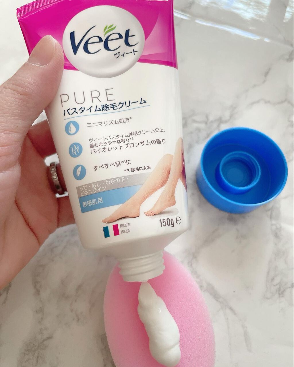 ヴィートピュアバスタイム除毛クリーム(敏感肌用)150gチューブ+スポンジ付きお風呂の時間にサッと使えるクリームタイプで、とっても便利でした🛁♡香りは除毛クリーム特有のツンとした匂いがほとんど気にならず、バイオレットブロッサムの香りがふんわり...