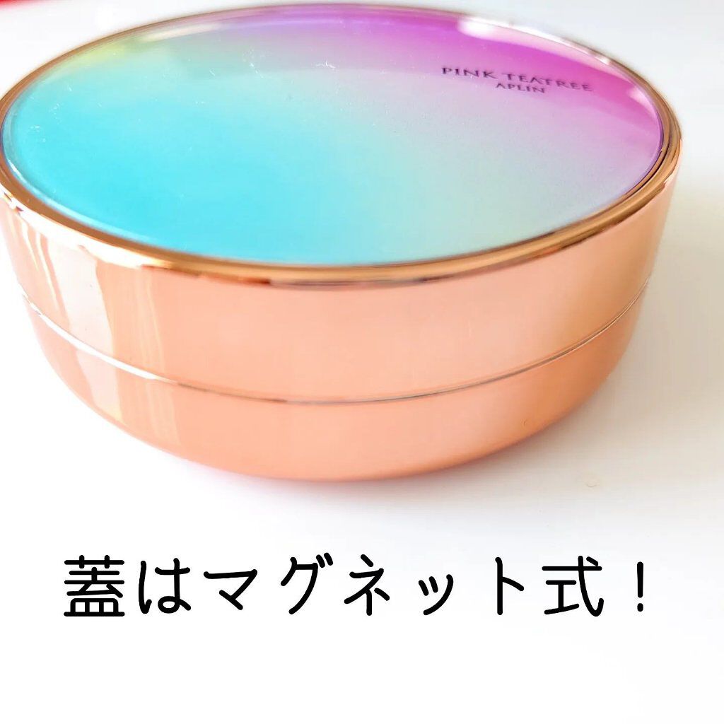 APLIN ピンクティーツリーカバークッション 21号ライトベージュ 2,490円(税込) 少量でよく伸びてハイカバー! 赤みやくすみをしっかりカバ一できるのに、厚塗り感のないなめらかな仕上がり♡ ハイカバーなのにナチュラルなツヤ感とサラッとしつつ、乾燥崩れしにくい仕上がりに感動します!!