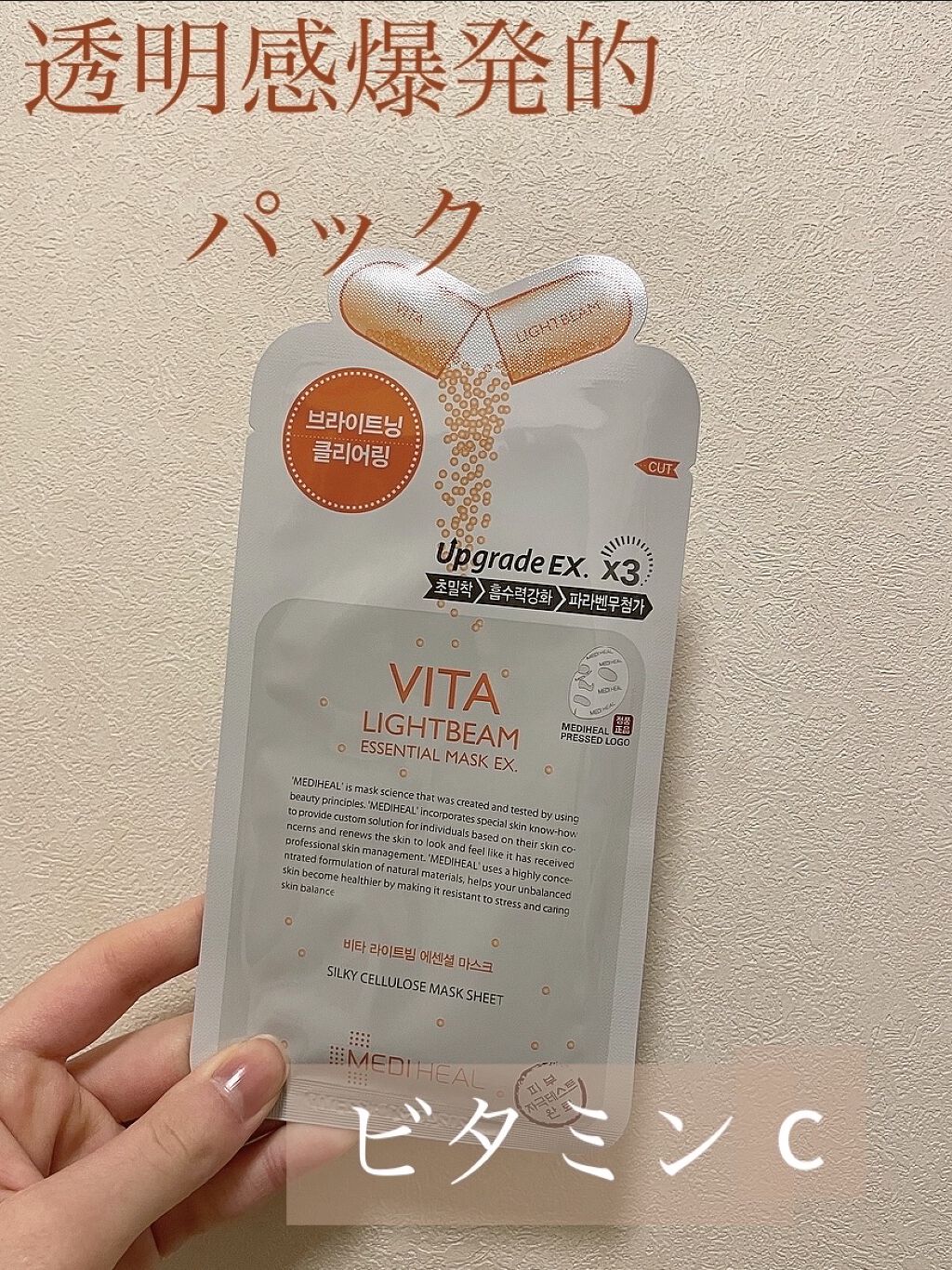 私はビタライトビームを箱買いしているのですが、今日は太陽に結構当たったな〜っていう日や、肌がくすんできたかも、と思った日にこちらのパックを使うと、顔がパッと明るくなって、肌を鎮静してくれます🐰🤍🤍 メディヒールのパックは液がヒタヒタで本当に水分量がすごい!ビタライトビームも水分量が多くて、保湿力がめちゃくちゃ高いです‼️ 夏の日焼けした後に使っても良いし、冬の乾燥しがちな季節にも使える、本当に一年中使えるパックだと思います👏🏻