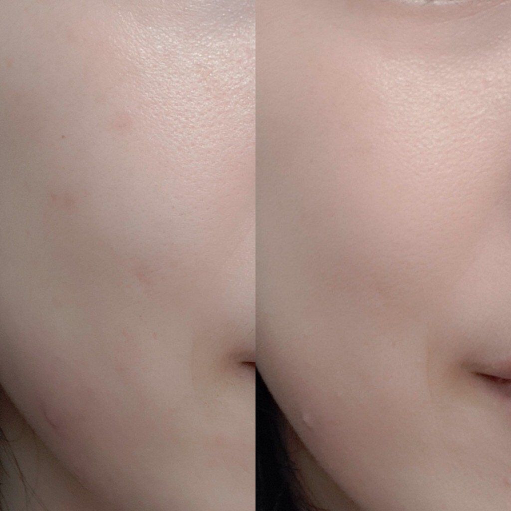 テクスチャーはしっとりとしていて、思ったよりもみずみずしいです。とても伸びがいいので少量でもすっ〜と伸びてくれます✨ 1番気に入ったのが持続力! 暑い日にメイクをすると化粧崩れや、てかりが特に気になるのですが💦1日使ってみてマスクをつけての外出にも関わらず化粧もほぼ崩れず、てかりが出なかったのがすごく嬉しかったです〜♡ 毛穴やくすみを自然にカバーしてくれるので、厚塗り感がなくて使いやすかったです😊
