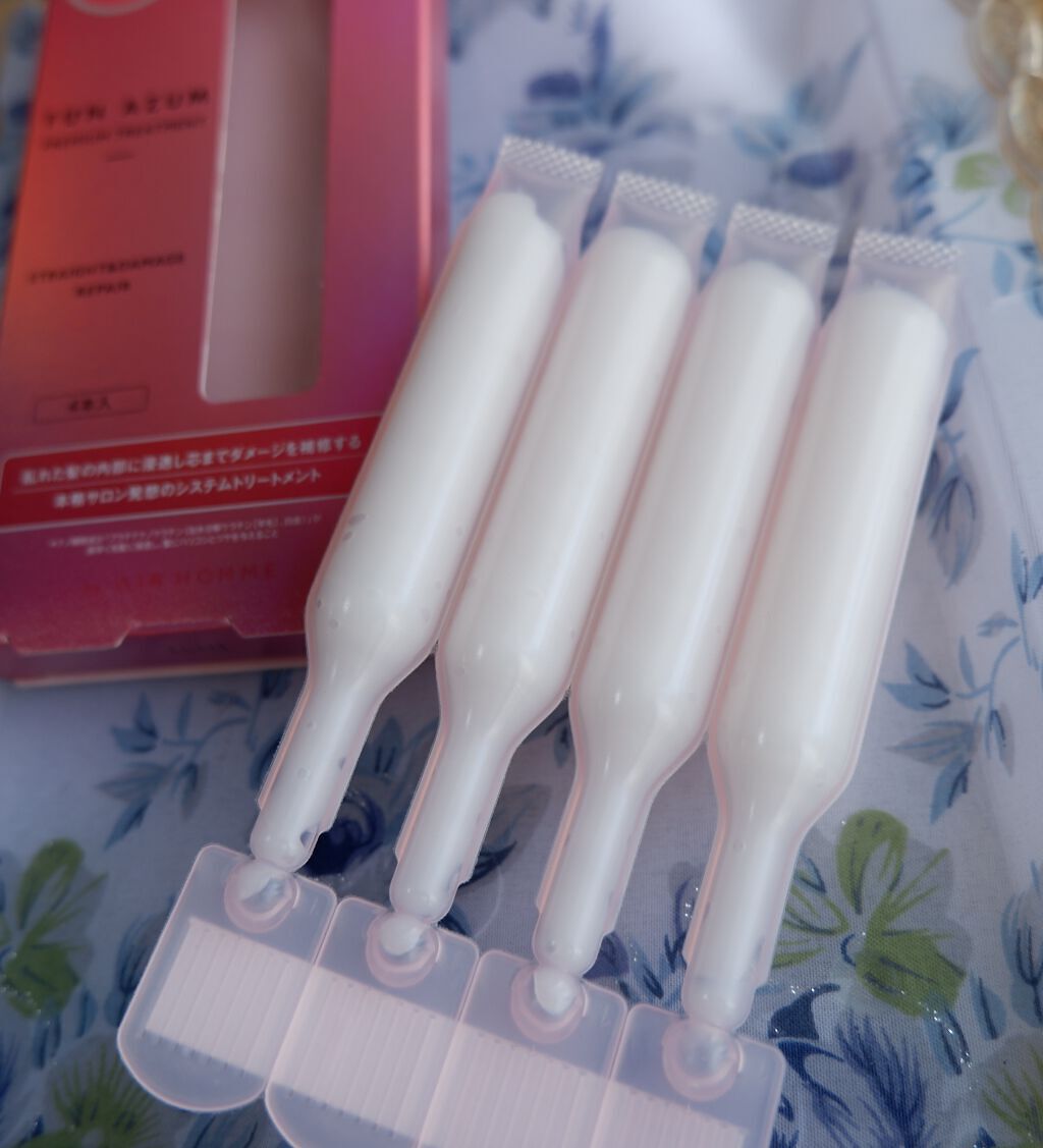 酸熱トリートメント発想+先進補修成分で髪質が変わる4日間集中プログラム˘ ˘❤︎ グリオキシル酸が髪の内部まで浸透し髪のダメージを補修します( ᐡ。• ·̫ •。ᐡ )♡ ピンクはプラチナケラチン配合でうねり&ダメージケアに特化したトリートメントになってます:* フルール&ホワイトサボンの香りも清楚って感じで好き嫌い分かれなそうないい香りでした🐰🫧 シャンプー後水気を切った髪になじませ、少し放置してから流すとうるうるになる🫠 ドライヤーで乾かしている時の指通りも引っかからずさらさらしていて、乾いた後の髪がしっとりまとまるからドライヤーが楽しみだった(*´ー`*) 酸熱トリートメントがお家でできるのでスペシャルケアとして気になる時に使いたいなって思いました🌱𓂃 𓈒𓏸 他にもパサつきケア、ゴワつきケアがあったのでそっちも試してみたいᏊ ֊ .̫ ֊ Ꮚ ᐝ