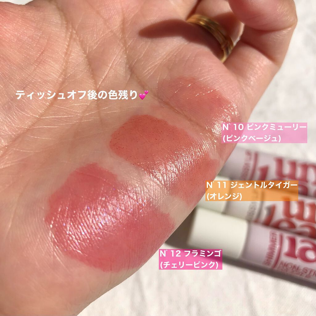 - 軽いオイルテクスチャーでべたつかず色移りが少ない、照り輝くパールコーティングティント。 グリッターパールがぶっくりした唇を、ローズヒップオイルやオリーブオイルやアボカドオイルなどがうるっとした唇を演出。