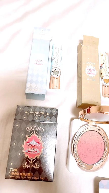 フラワーノーズのアイシャドウとチークを購入しました。だいぶ前に発売されたスワンシリーズのアイシャドウとサーカスシリーズのチークです。 使用感はアイシャドウは結構粉っぽい感じで、ラメは綺麗ですが、少し粉飛びするかなといった感じでした。 淡いピンク色に発色します。色白の人が使うとより顔色が明るく見えると思います。