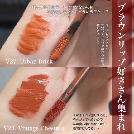 スルスル塗れるティントです! 高発色で少しぼかすのは難しく感じました。薄くつけたい時には指とかでぼかすのがいいかなと思いました! 30はパキッとしたオレンジカラーでイエベさんがリップメインのメイクをしたい時にオススメです! マットですが質感的にはオイルっぽい感じで唇がマットっぽさを感じるとかはなかったですが、時間が経つと乾燥が気になりました(^^;;