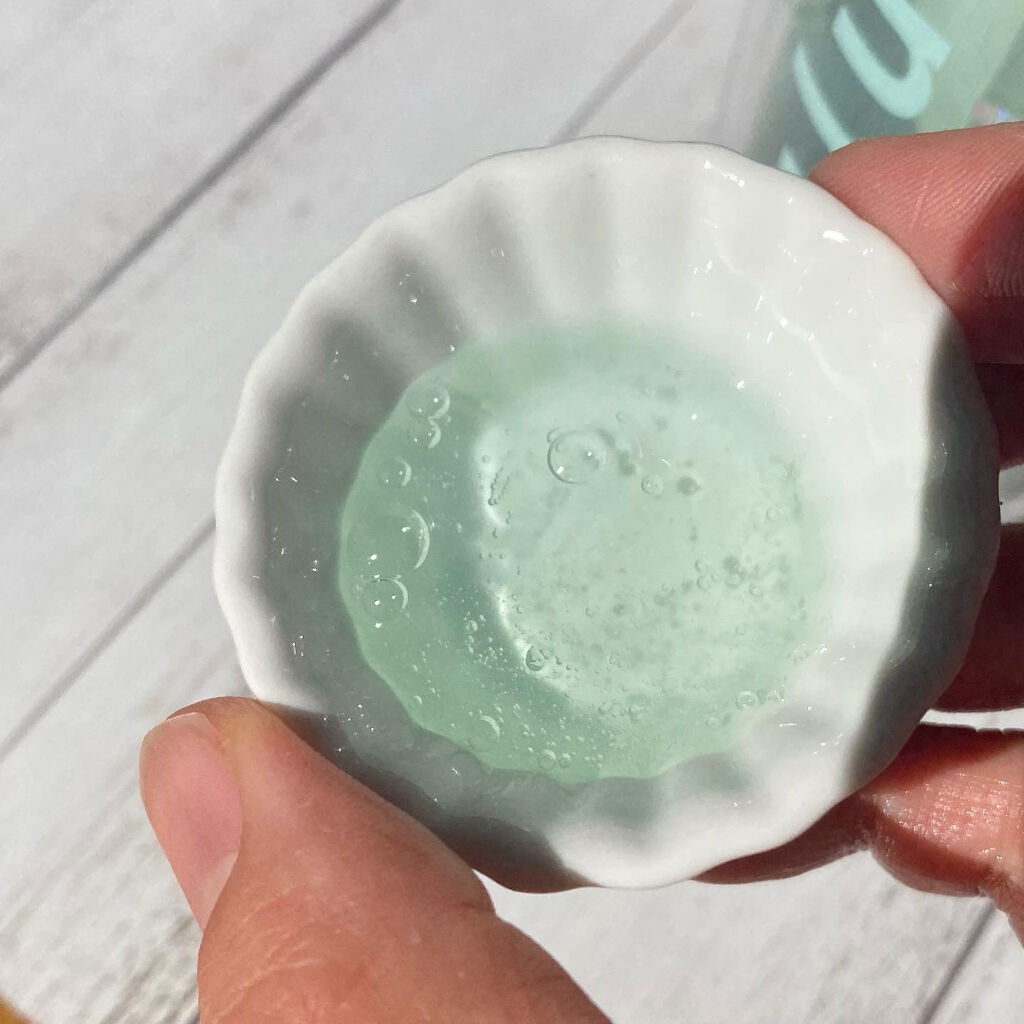 手に取ると、透明のさらっとした液体。 ですが、お肌に乗せるととろみとも違うのですがうすーい膜が張るような感じ✨ 肌馴染みが良くて、しっとりとしました🥰 まさに、水分とお肌が一体化するような感じです。 何の香りかはわかりませんが、心地よい香りがかすかにあります💕💕