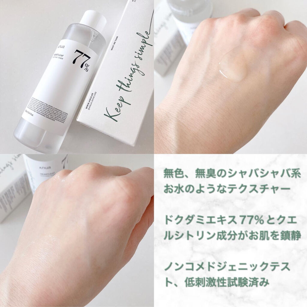 肌荒れやニキビ、毛穴とお肌悩みが絶えない、私たちにとってマストなトナーです!⭐️ 私も何番もリピしているほどマストアイテム! 水分がお肌にぐんと吸収されるので火照ったお肌もクールダウンしてくれるように感じます😊 お水のような感覚でさっぱりとしているのでバシャバシャ使ってもベタつくことがないので夏場は特にAnuaのトナーが活躍しています😌🧡