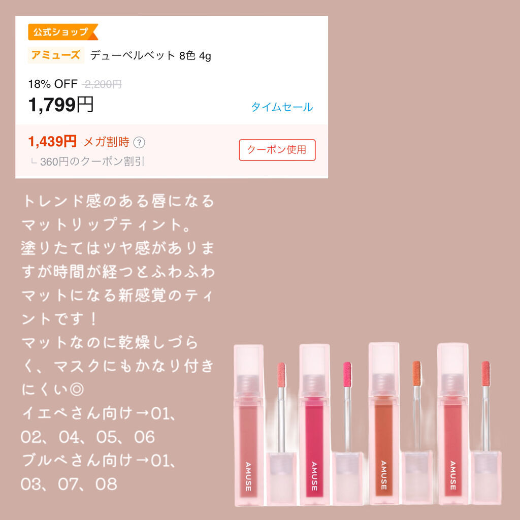おすすめアイテムAMUSE×口紅