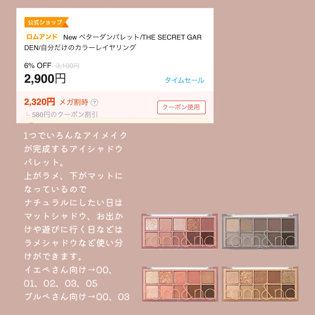 rom&nd ベターザンパレット | 3,190円 |