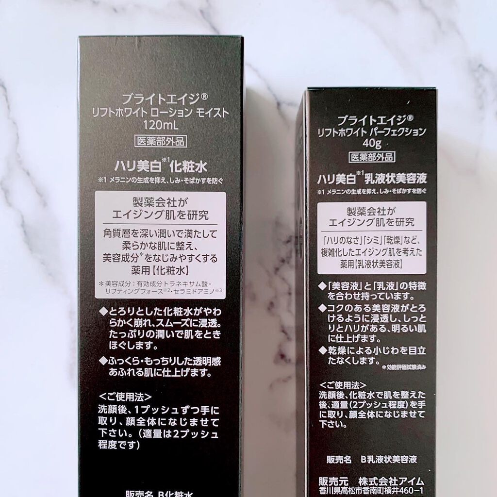 BRIGHTAGEリフトホワイトローションモイスト&リフトホワイトパーフェクションを使ってみています✨️第一三共ヘルスケア開発のエイジングケア*¹「ブライトエイジ」。このスキンケアラインの良いところは、たった2つで完了できる手軽さ💕忙しい日や...