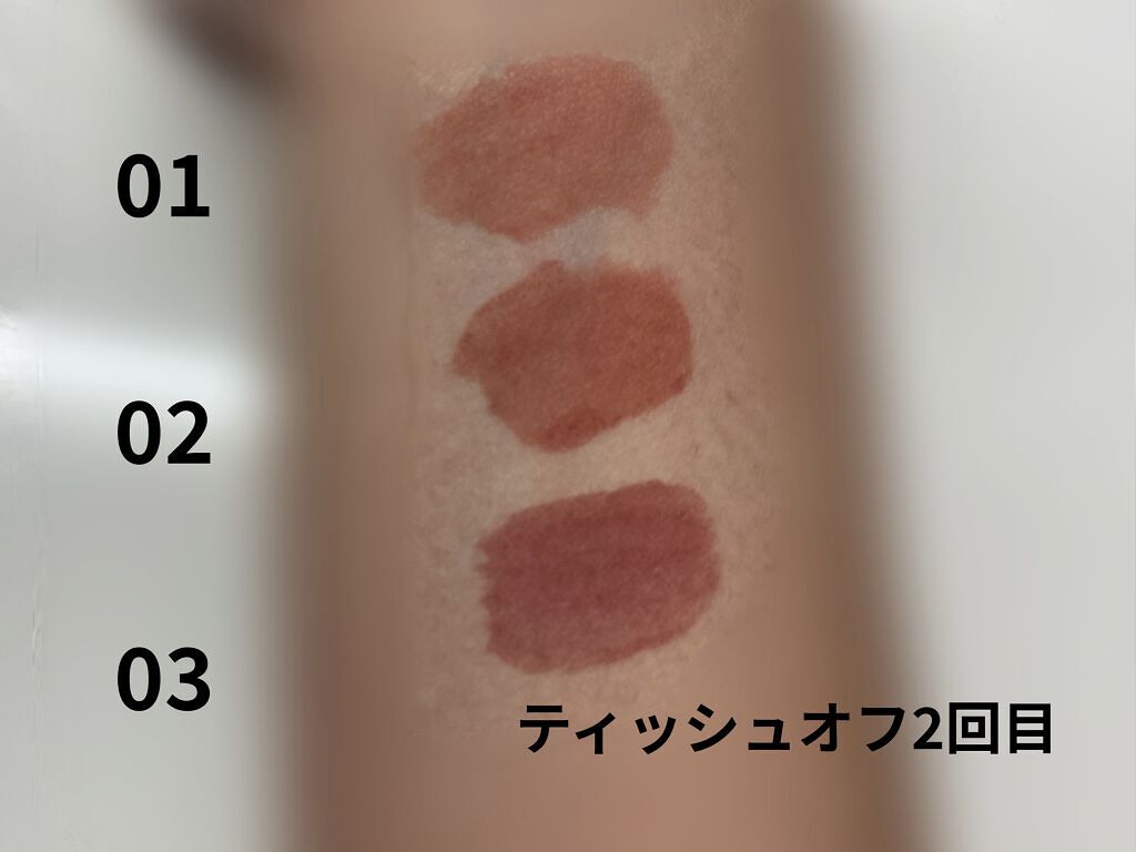 まず、パケがオシャレすぎる😳 飾ってるだけで価値あります🥇🥇 そしてティントなのでしっかり色が残ります! ティッシュオフしてもけっこう色残りますよ🙌 ハケも小さめで唇に塗りやすいです🙆♀️ コーラルピンクカラー❤️ 1番普段使いしやすいカラーだと思います🙆♀️ 青みピンクカラー💕 ハッキリとした色味なのでリップが主役のメイクに もってこいです🌸 挑戦のパープルカラー💜 これは強い女になりたい方に買ってほしい‥!!! 新色のテラコッタカラー🧡 一瞬でオシャレ顔になれちゃいます‼︎ どの色もかわいくて最高です🌸 失敗したくない、確実に使える色が欲しい方 →01.04がおすすめ◎ 強い女になりたい方 →03がおすすめ◎