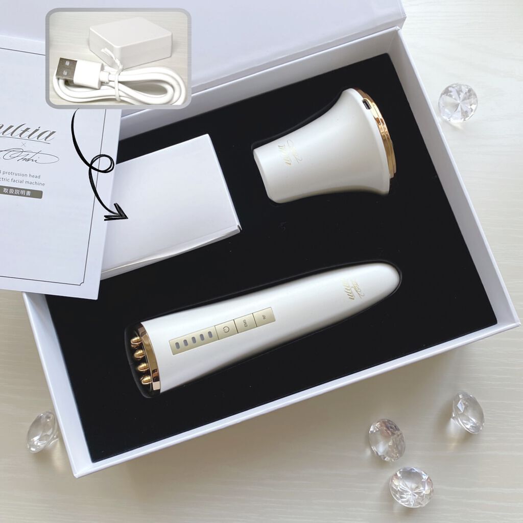 - 小顔筋膜施術の第一人者「大口貴弘」氏監修のもと、その指列を落とし込んで配置された8個の電極が特徴的なヘッドを持つEMS・RF搭載美顔器です。ヘッド部分には、肌との親和性が最も高いとされる24K純金加工を採用。 日常のケアに取り入れやすいようEMS・RF・LEDの3つの機能に特化し、同時に発生させることで、ハリ感・透明感のある肌へと導きます。