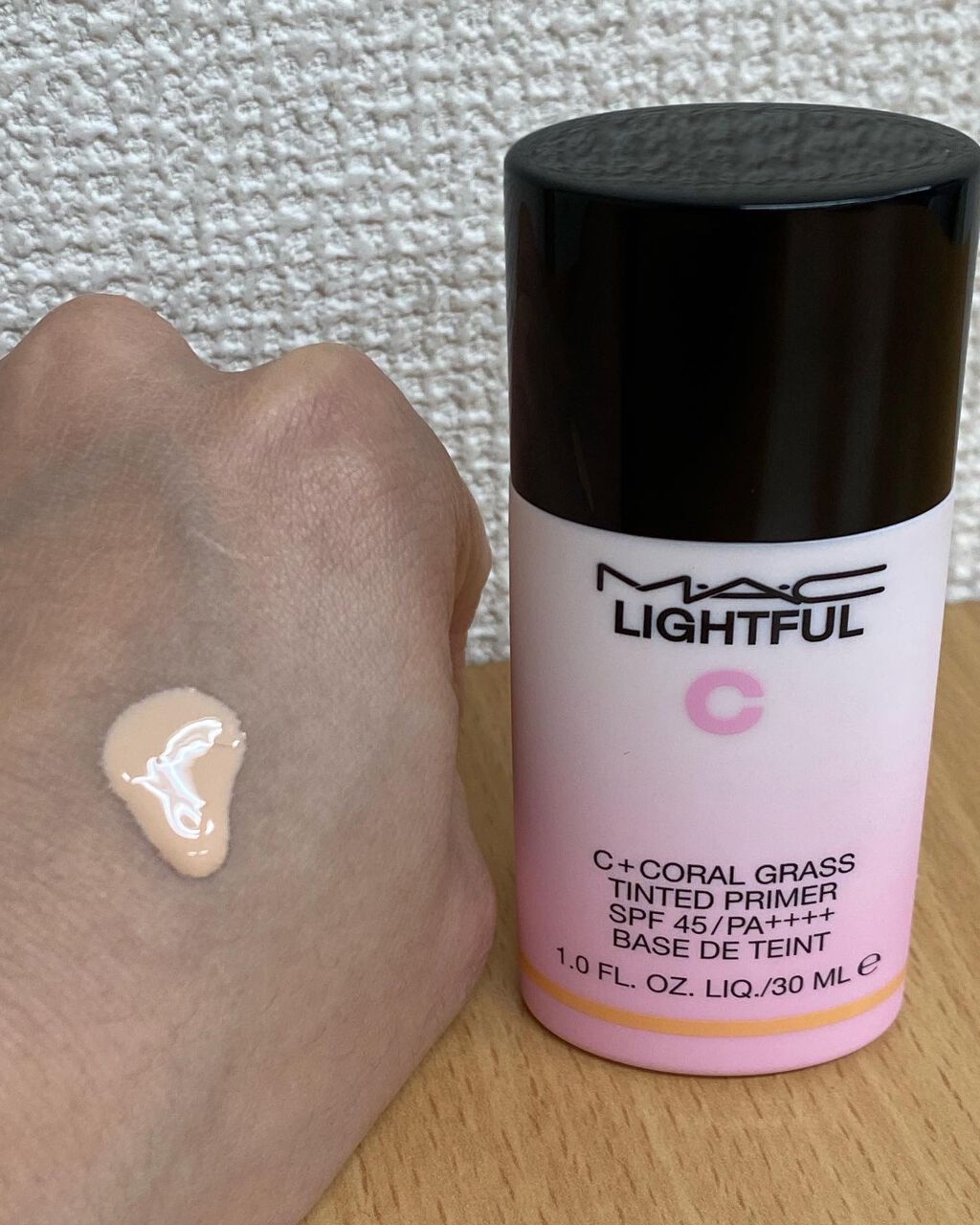 保湿感・ツヤ感・密着感◎ 【M・A・C/ライトフル C+ティンティッド プライマーSPF45】 緩めのテクスチャーで伸びが良いです◎ SPF45/PA+++++で紫外線対策もできてオススメ👾 保湿感があり、乾燥を感じにくくてお気に入り🫶🏻 ツヤ感が出て綺麗な仕上がりイメージ