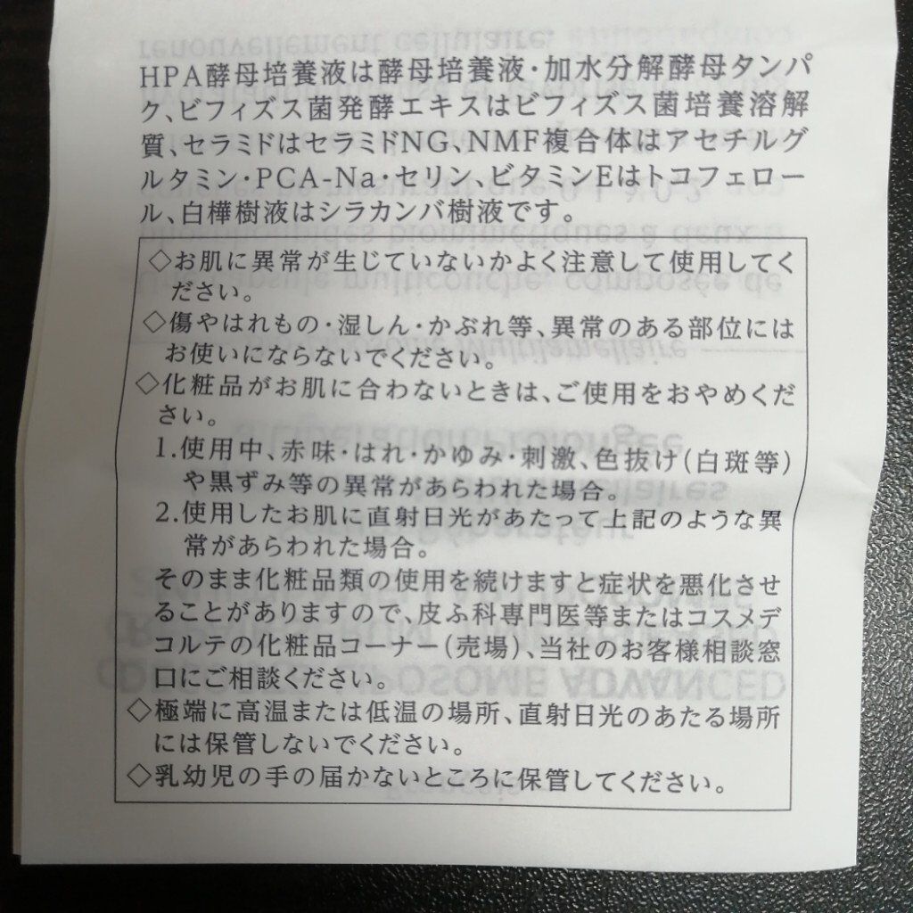- <30ml> エクトイン、水、BG、グリセリン、加水分解ヒアルロン酸、キサンタンガム、カルボマー、フェノキシエタノール、香料、トコフェロール、セラミドNG、セリン、DPG、水添レシチン、水酸化Na、PCA-Na、フィトステロールズ、(アクリレーツ/アクリル酸アルキル(C10-30))クロスポリマー、安息香酸Na、コハク酸、ヒドロキシプロリン、コハク酸2Na、シラカンバ樹液、アセチルグルタミン、ビフィズス菌培養溶解質、テンニンカ果実エキス、加水分解酵母タンパク、酵母培養液 <50ml> エクトイン、水、BG、グリセリン、加水分解ヒアルロン酸、キサンタンガム、カルボマー、フェノキシエタノール、香料、トコフェロール、セラミドNG、セリン、DPG、水添レシチン、水酸化Na、PCA-Na、フィトステロールズ、(アクリレーツ/アクリル酸アルキル(C10-30))クロスポリマー、安息香酸Na、コハク酸、ヒドロキシプロリン、コハク酸2Na、シラカンバ樹液、アセチルグルタミン、ビフィズス菌培養溶解質、テンニンカ果実エキス、加水分解酵母タンパク、酵母培養液 <付けかえ用(75mL)> エクトイン、水、BG、グリセリン、加水分解ヒアルロン酸、キサンタンガム、カルボマー、フェノキシエタノール、香料、トコフェロール、セラミドNG、セリン、DPG、水添レシチン、水酸化Na、PCA-Na、フィトステロールズ、(アクリレーツ/アクリル酸アルキル(C10-30))クロスポリマー、安息香酸Na、コハク酸、ヒドロキシプロリン、コハク酸2Na、シラカンバ樹液、アセチルグルタミン、ビフィズス菌培養溶解質、テンニンカ果実エキス、加水分解酵母タンパク、酵母培養液 <75ml> エクトイン、水、BG、グリセリン、加水分解ヒアルロン酸、キサンタンガム、カルボマー、フェノキシエタノール、香料、トコフェロール、セラミドNG、セリン、DPG、水添レシチン、水酸化Na、PCA-Na、フィトステロールズ、(アクリレーツ/アクリル酸アルキル(C10-30))クロスポリマー、安息香酸Na、コハク酸、ヒドロキシプロリン、コハク酸2Na、シラカンバ樹液、アセチルグルタミン、ビフィズス菌培養溶解質、テンニンカ果実エキス、加水分解酵母タンパク、酵母培養液 <FRANCK MULLER EDITION Philosophy of Time(110mL)> エクトイン、水、BG、グリセリン、加水分解ヒアルロン酸、キサンタンガム、カルボマー、フェノキシエタノール、香料、トコフェロール、セラミドNG、セリン、DPG、水添レシチン、水酸化Na、PCA-Na、フィトステロールズ、(アクリレーツ/アクリル酸アルキル(C10-30))クロスポリマー、安息香酸Na、コハク酸、ヒドロキシプロリン、コハク酸2Na、シラカンバ樹液、アセチルグルタミン、ビフィズス菌培養溶解質、テンニンカ果実エキス、加水分解酵母タンパク、酵母培養液 <FRANCK MULLER EDITION Color Dreams(110mL)> エクトイン、水、BG、グリセリン、加水分解ヒアルロン酸、キサンタンガム、カルボマー、フェノキシエタノール、香料、トコフェロール、セラミドNG、セリン、DPG、水添レシチン、水酸化Na、PCA-Na、フィトステロールズ、(アクリレーツ/アクリル酸アルキル(C10-30))クロスポリマー、安息香酸Na、コハク酸、ヒドロキシプロリン、コハク酸2Na、シラカンバ樹液、アセチルグルタミン、ビフィズス菌培養溶解質、テンニンカ果実エキス、加水分解酵母タンパク、酵母培養液