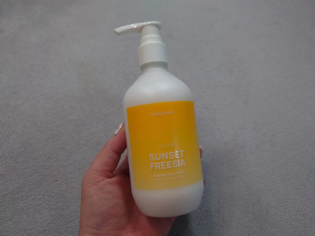 フリージアの香りと甘くみずみずしい梨の香りが作り上げる清楚なフローラルフレグランス 白色の伸びが良いクリームで軽いつけ心地、蓋を開けるとサンセットフリージアがふんわり香ります✨️ 普段は香水の匂いが強くて苦手でつけないから、ケアしながらパフューム効果もある製品は便利🌸