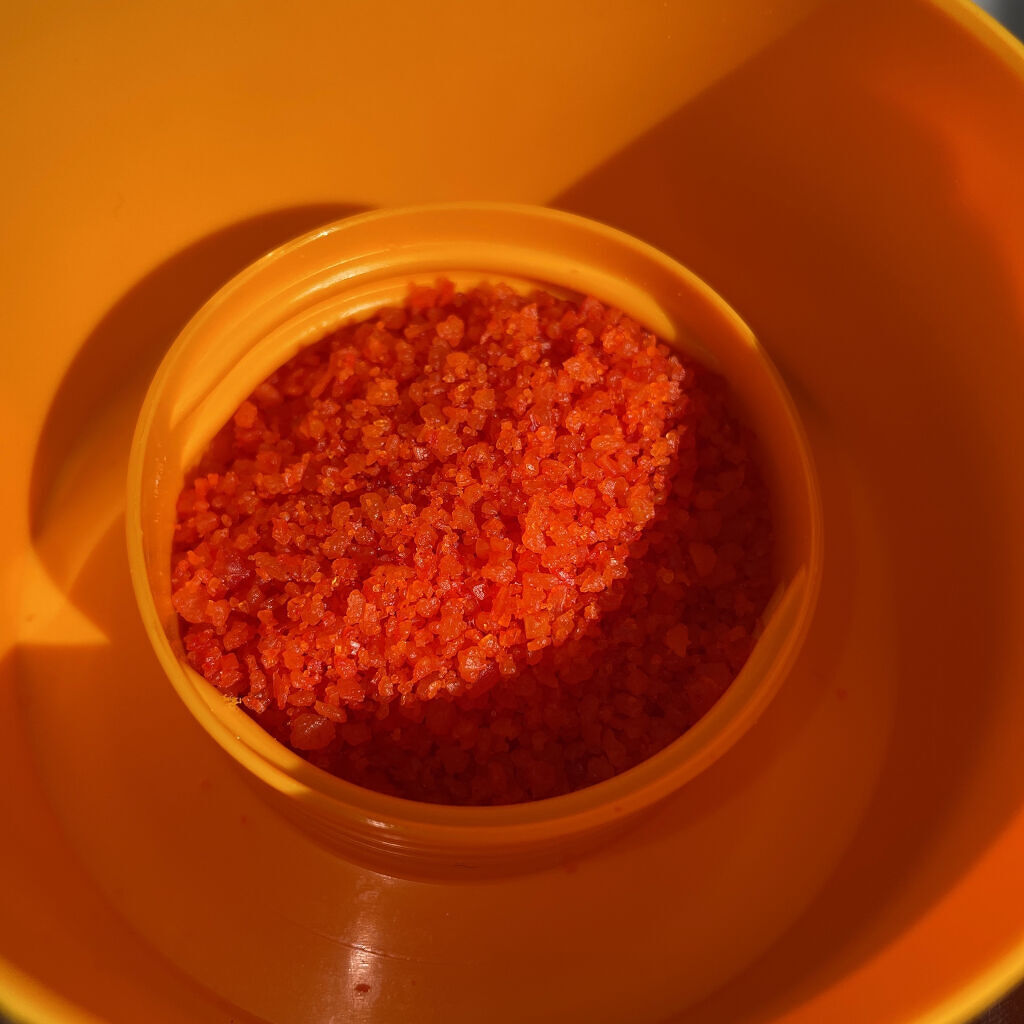 - <新> 塩化Na、香料、炭酸Na、オレンジ果皮油、フユボダイジュ花エキス、ジャワシトロネラソウ葉油、コショウ果実油、ラバンデュラハイブリダ油、レモン果皮油、オレオイルメチルタウリンNa、ポリソルベート20、黄4、赤102、トリ(カプリル酸/カプリン酸)グリセリル <旧> 塩化Na、香料、炭酸Na、ビターオレンジ油、ビターオレンジ葉/枝油、オレンジ果皮油、フユボダイジュ花エキス、コウスイガヤ油、ラバンデュラハイブリダ油、レモン果実エキス、カンフル、オレオイルメチルタウリンNa、ポリソルベート20、黄203、黄5、水、トリ(カプリル酸/カプリン酸)グリセリル