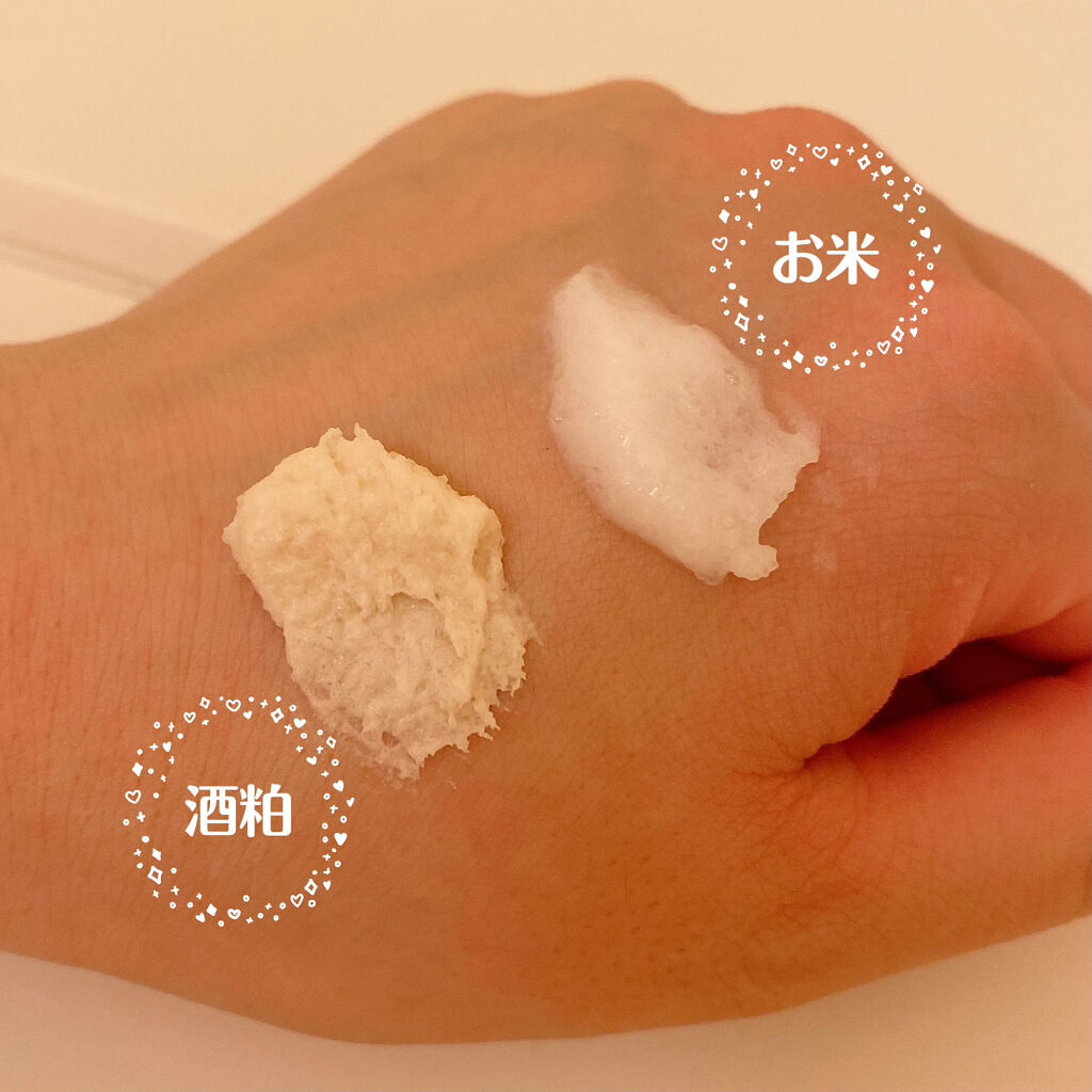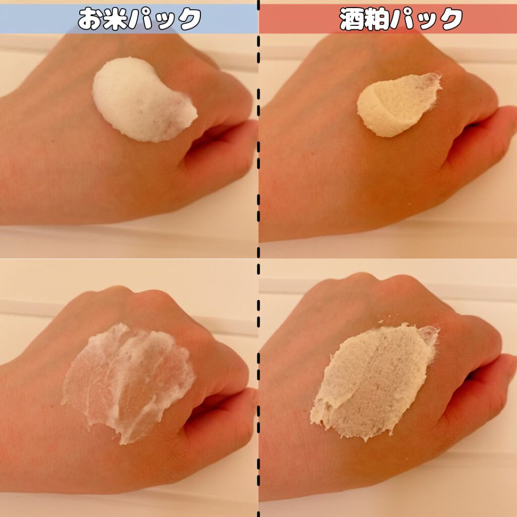 気にならないくらい すこーしだけアルコールの匂いがあり 🗯 最初はピリピリするなと思ったけどその後は全然気にならず 🤭 酒粕パックと比べるとゆるいお粥みたいなテクスチャーです! 使った後は 、お肌しっとり〜お肌の乾燥が気になってた時に使っていい感じになりました 🤔✨ 匂いはまさにお酒な感じ!🍶テクスチャーは やや固めで もったり ☁️ 使った後は 、お肌しっとりもちもち透明感とトーンアップがすばらしい ☀️✨ 洗い流すパックは洗顔後に水分拭きとって自分の顔の量だけ塗ってその後にお風呂につかってあたたまりながらちょっと待つ〜洗い流して終わり!って感じで使えるのでとってもオススメです 💁🏻♀️ ✨ 量を調節できるのも 🎖⭕️