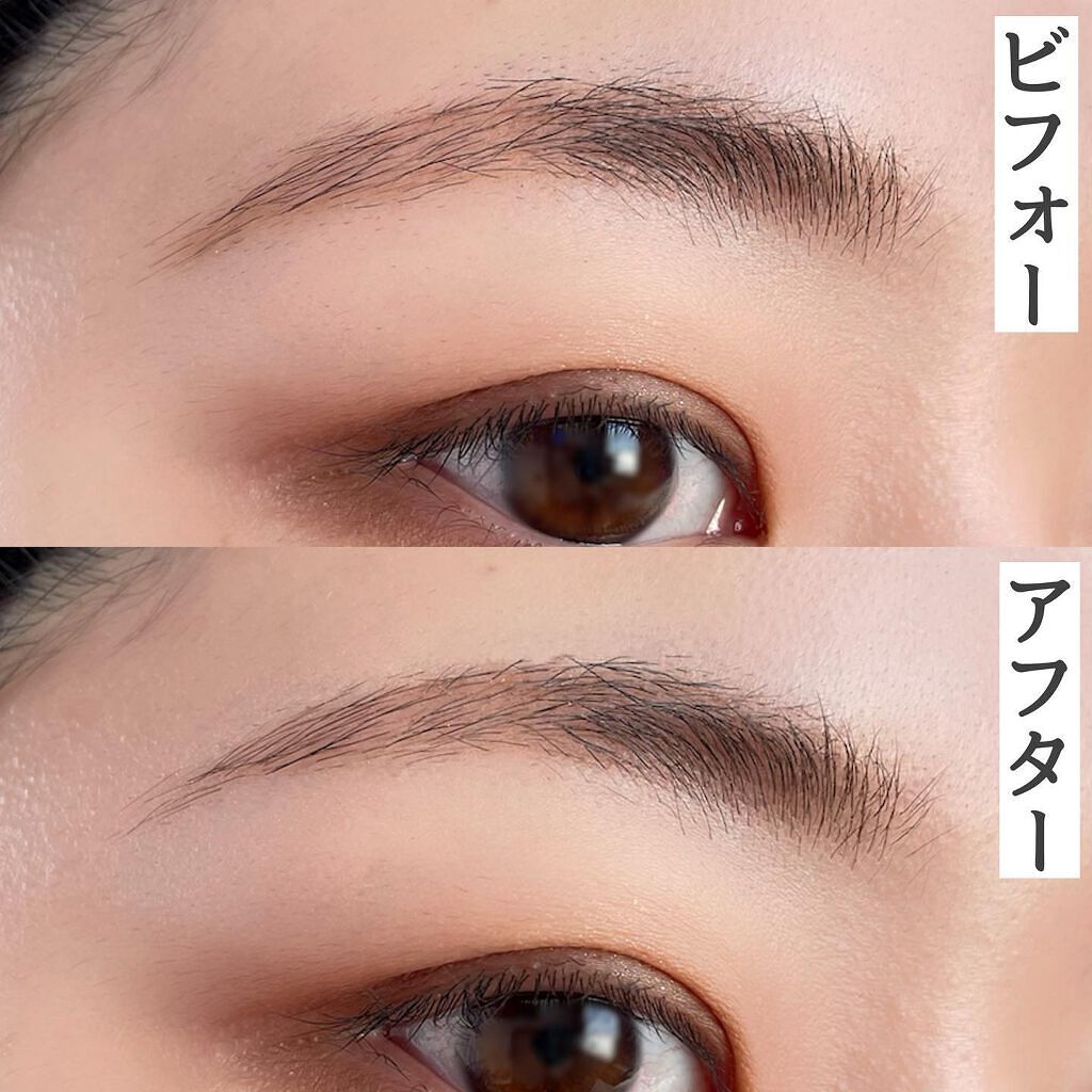 ほんの少し青みを感じるグレージュカラー 眉マスカラの色味も合わせて使うと眉毛の黒々しさが抑えられ抜け感のある仕上がりになる 屋外9時間、皮脂や少し汗をかいていても特に滲んだりしない、強く擦って段々薄まってくる程度なので擦れにも耐性がある PC問わず使いやすい色味 抜け感ある色味と仕上がり、筆当たりが優しく痛くない
