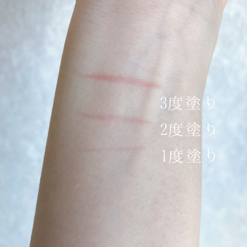 色味🐰🍁🍂赤よりも少しまろやかさを感じ、ブラウンでありながら体温を感じる、絶妙なカラーです☺️♡ 塗り心地🐰🍁🍂リップクリームのように、柔らかくするすると塗れます💡そして、全く乾燥しない😳!!塗りたては、程よく艶が出て本当に美しい仕上がり…🥺💓 色モチ🐰🍁🍂何もしないで2〜3時間程、マスクの着脱や飲食等をすれば1〜2時間くらいだと思います👀💡ティントではないので、普通に飲食をしたら落ちてしまいます😓保湿力が高く油分が多いためか、マスクやコップへの色移りは結構ありました🙇♂️