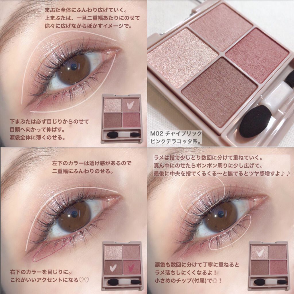 赤み強めカラー明るいピンクで✨🩷✨ この、右下の赤み強めのカラーが好き!!かっこよく、目力もアップできちゃう! 明るさをアップ✨✨✨ 涙袋もこのふたつのパレットを使用〜 ぷっくり感アップします。