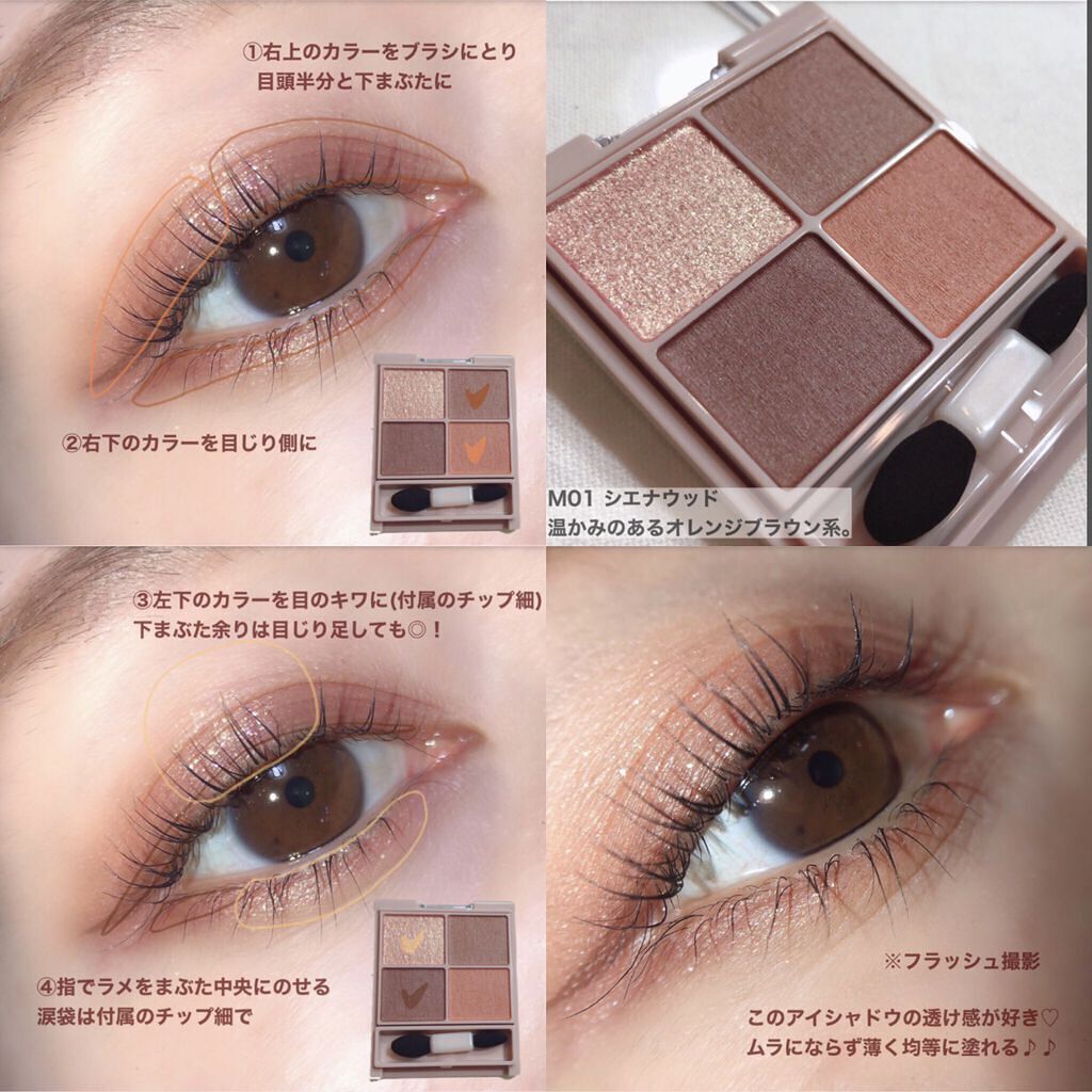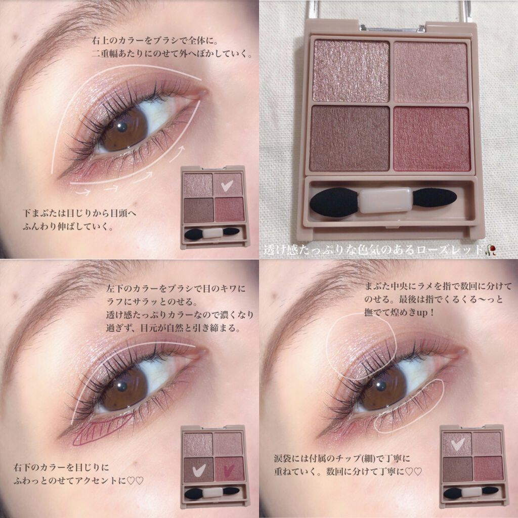 - シルキースフレアイズの姉妹品♡ 肌に溶け込むような透けマットシャドウ 透け感のある柔らかい仕上がりになるマット3色と、透け発色の繊細ラメ1色のパレットシャドウ♡ 完全マットアイや、ラメ×マットアイなど、メイクのパターンを楽しみましょう!