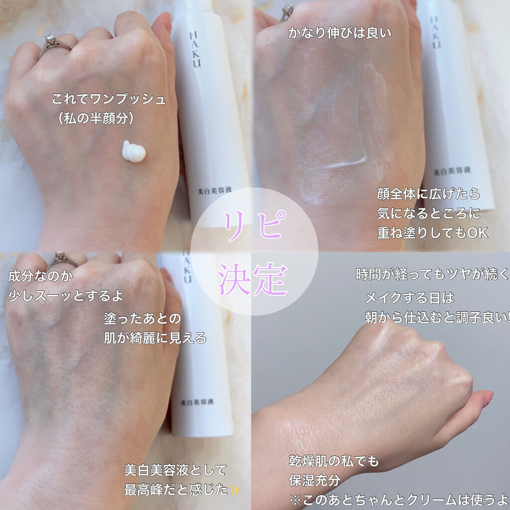 | みずみずしいテクスチャーで 伸びの良いゲルクリーム。 保湿力もあり、肌がしっとり。 HAKUを使ってから肌の調子が良い◎ | 詳細を見る | |