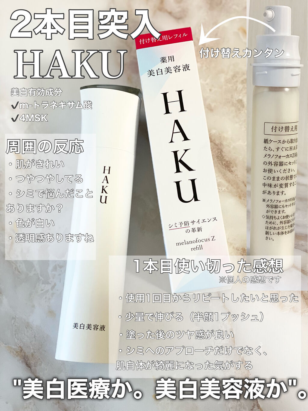 HAKU様からいただきました♡新発売した10代目の薬用美白美容液メラノフォーカスは使ってみた?ブランド誕生から20年🎉資生堂100年の研究をバックボーンにした集大成!美白ケアの最高峰はシミの原因に根本から効かせる3種類の薬用有効成分配合✨メラ...