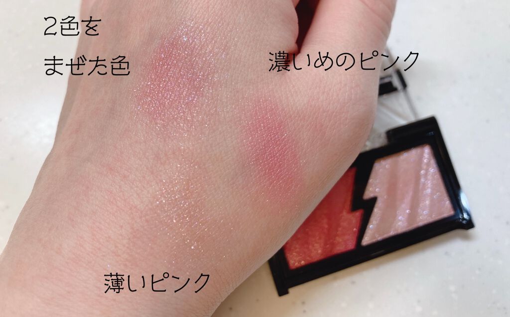 シルバーパールがツヤめく、くすみピンクのアイシャドウ☺️ 左上のシルバーのような青みがかったようなハイライトカラーがとても素敵です✨ 透明感が出るカラーなので上品なメイクが出来ると思います💗 こちらも持ちが良く、頬がキラキラしてしまうことは無かったです。 excelのアイシャドウ大好きです💕