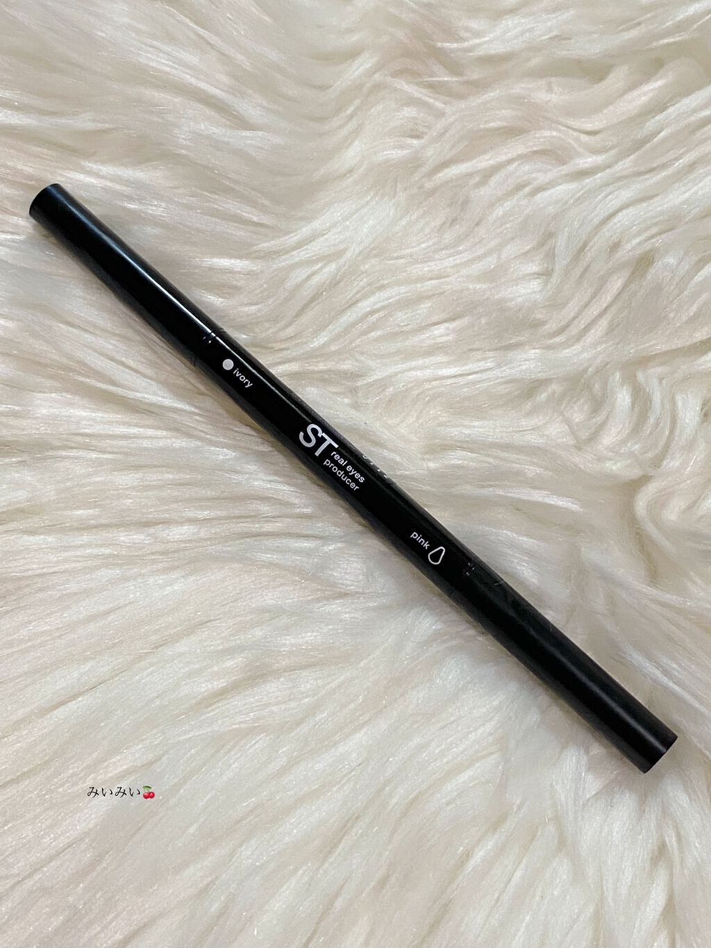 - 下まぶたにアイボリーカラーとニュアンスピンクカラーの2色を塗ることで、目幅を拡張し、白目を自然に大きく見せるWエンドの白目強調※アイライナー。 白目強調・たれ目強調・目幅拡張。 ※下まぶたへのメイクアップ効果による